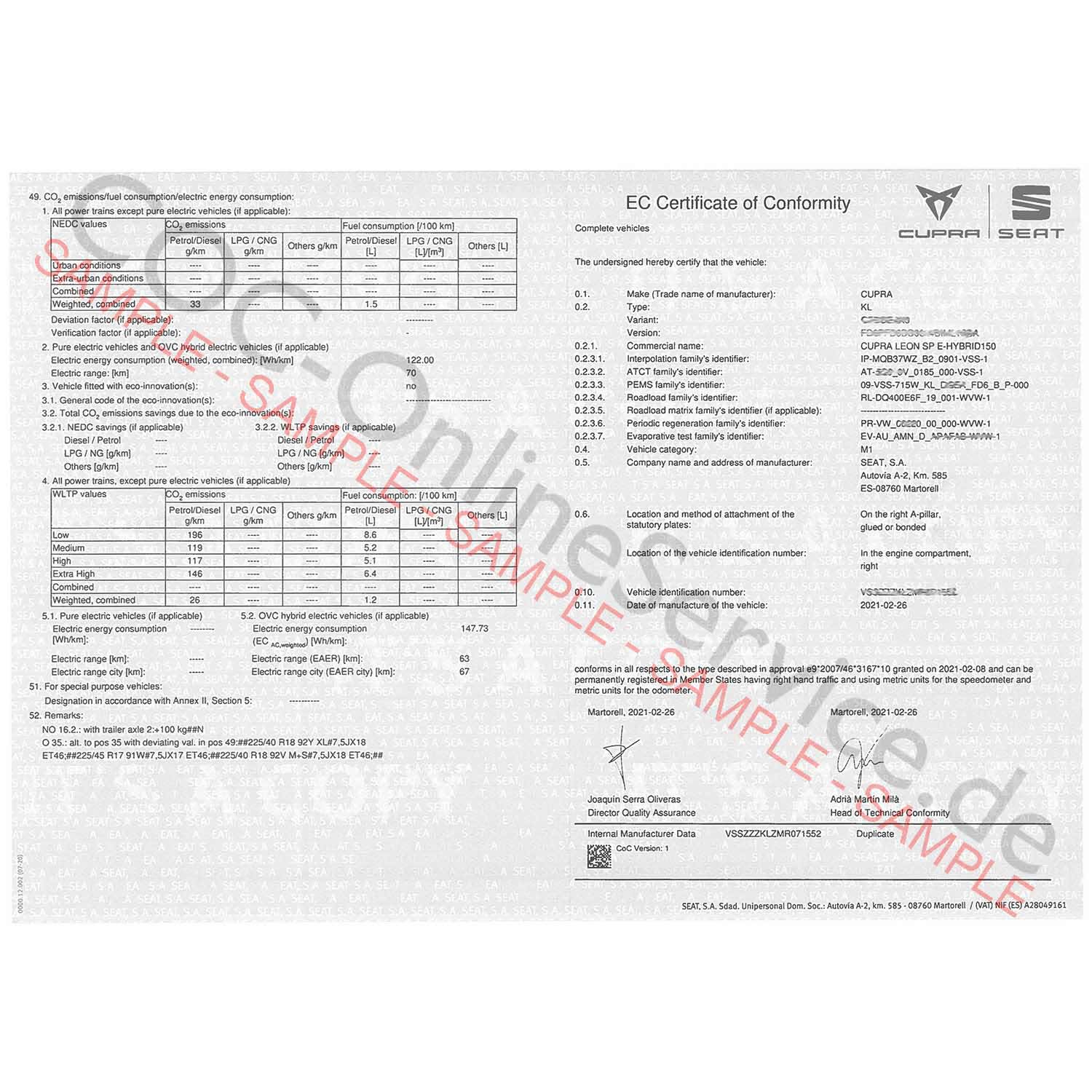 Μόλις το έγγραφο παραχθεί από τον κατασκευαστή του οχήματος, θα λάβετε ένα μήνυμα ηλεκτρονικού ταχυδρομείου με το PDF του COC σας. Με αυτό το αντίγραφο είναι δυνατόν σε πολλές περιπτώσεις να ταξινομήσετε το όχημά σας ή να πραγματοποιήσετε τεχνικό έλεγχο. Το πρωτότυπο έγγραφο θα σας αποσταλεί στη συνέχεια με επιστολική επιστολή ή εξπρές.