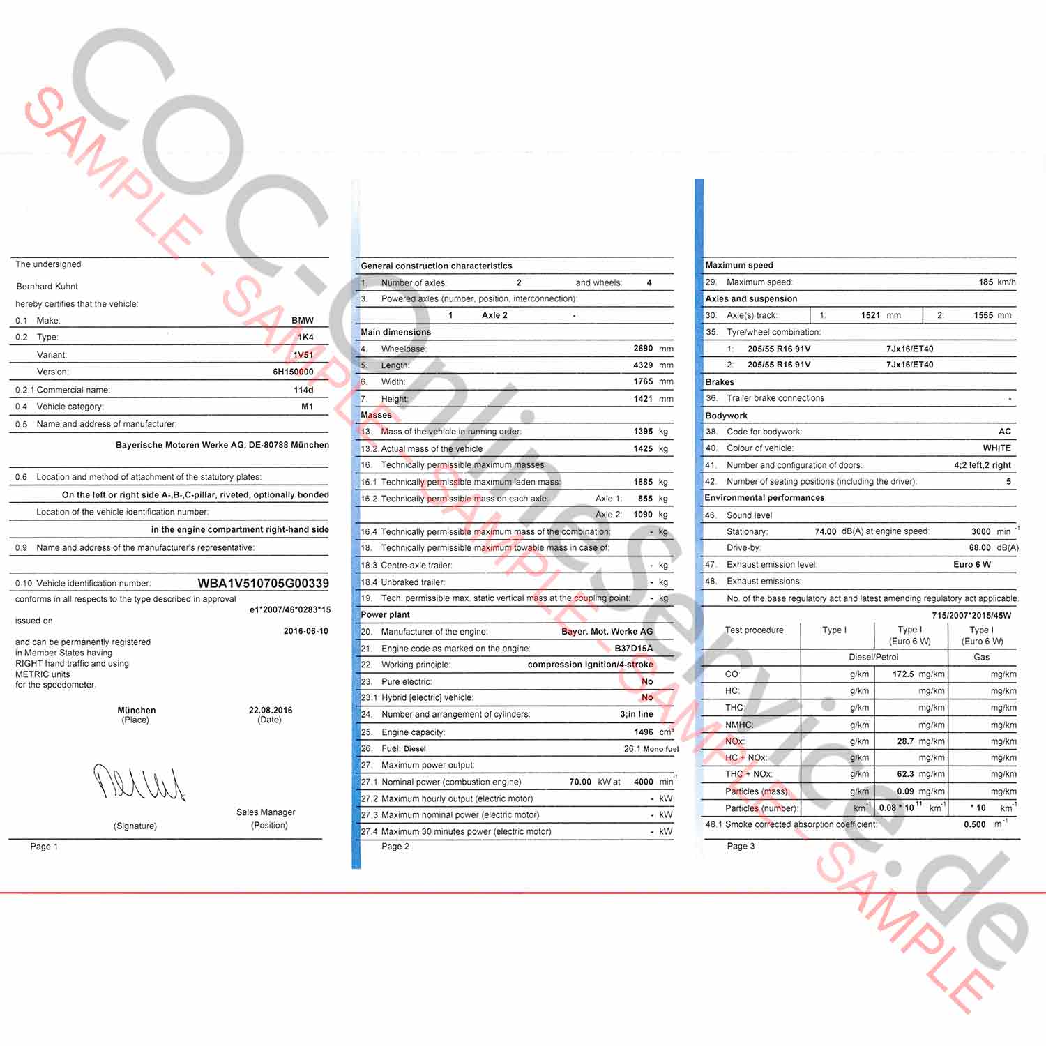 Si la entrega de un COC para su número de bastidor (VIN) no es posible, por ejemplo porque el vehículo es demasiado antiguo o no se fabricó para el mercado europeo, cancelaremos el pedido inmediatamente y le reembolsaremos el precio de compra íntegro.